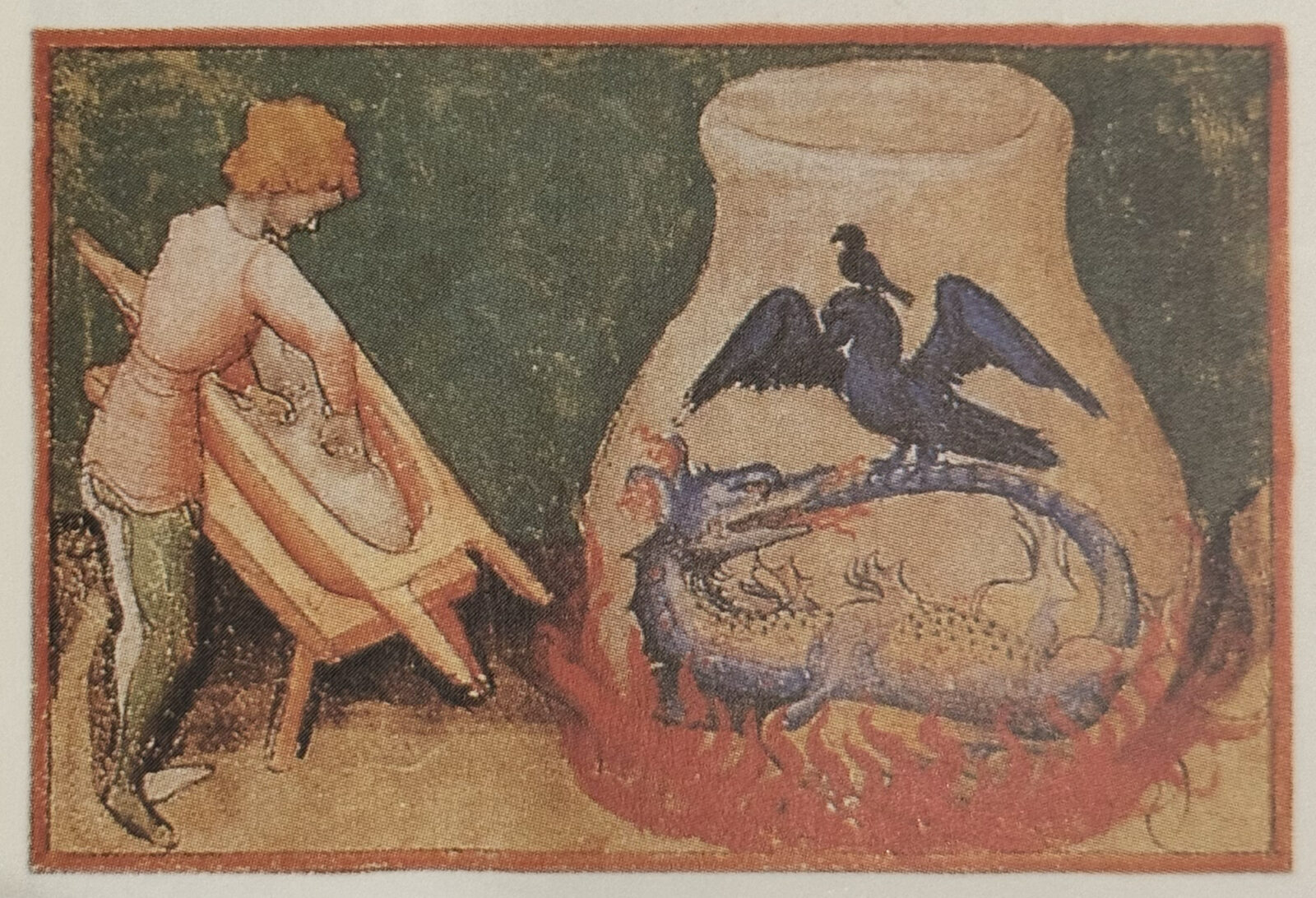 Aurora Consurgens, late 14th century. An alchemical treatise shows the stages of the magnum opus inside a single “philosophical egg”. Just as the dragon and raven survive the alchemist’s furnace to spark new life, disruptive technologies follow a power‑law purge where roughly 20 % persist through the flames and are reborn as the next dominant force.